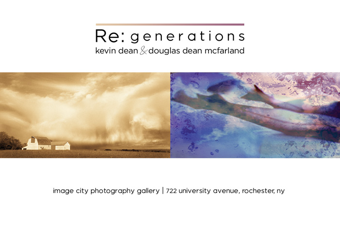 Image City Photography Gallery presents Re: Generations, the work of Doug McFarland, father, and Kevin Dean, son. This work of two generations synergistically creates a splendid display of images. Although strikingly different they are artistically complimentary resulting in a fascinating photographic exhibition. States Kevin, “I grew up around art. My father is an amazing, accomplished artist, but he would never admit that. I suppose you could say it’s just in my veins” At eleven Kevin became “obsessed” with photography. At 19 while pursuing a fine arts degree he “fell in love with metalworking. “ He states “in those days, it seemed as though I fell in love with every new art form I experienced.” During a hiatus from metal sculpture he returned to photography. Now Kevin feels he has found the perfect balance between photography, metal sculpture, design, and video art. Doug recalls his fascination with art and nature as an Appalachian Mountains boy, born in the central Pennsylvania railroad town of Altoona during the ‘50s, and “growing up in a loving, caring family.” Doug recollects, “When I was eight, we moved to a one bedroom house on the edge of a wonderful forest in Johnstown, Pa. Not having a room of my own I made the forest cliffs, gullies and creeks my permanent playroom. By age eleven I was forest hiking with my used Kodak Brownie.” While in the service in Europe in his early twenties, this romance with nature continued. In his thirties, deep nature exploration in Canada and throughout the United States, further cultivated his artistic passion for sketching, painting and photography. This relationship continues. Doug states “After all, these places have always been my home away from home, rain or shine, cold or hot, and to be like my youthful forest playroom.” He states “Combining my love of the forest, and my love of photography, I shoot in the hopes that others can experience the beauty of the forest as I do.” Doug’s subject matter interests include architecture and city skylines. As an early student of traditional art, Doug began selling oil, ink and pastel paintings in the ‘60s and ‘70s as well as developing an interest in black and white photography. By the ‘80s he experimented with computer digital images, producing digital artwork for computer games. In the ‘90s he rekindled his interest in photography with the eventual move to digital in 2002. During this period Doug created his own color palette which he calls “sienna”, unlike the traditional “sepia”. Neither Doug nor Kevin considers their work as traditional. Doug sees his use of color and style as atypical. Kevin views his subject matter, style, technique and presentation, including mounting materials, as non-traditional. Kevin describes his work as “minimal experimental photography.” Minimal, that is, in taking a single subject i.e. an arm or leg, and experimental by using toy film cameras, toy digital cameras, medium format cameras, cell phone cameras, Polaroid cameras, and video stills. He also seeks out and uses out-of-date film. Kevin has exhibited in twenty-six group and solo shows in and outside of Rochester in both metalwork and photography. National and international shows include Boston, Los Angeles, Prague, Toronto, New York City, and Washington, D.C. He has twice been an art grant semi-finalist in sculpture. Three times he has been published in Lake Affect Magazine. Doug has had numerous exhibitions and frequently exhibits at art shows. He has also given talks on his photography. Also showing are three guest photographers, four Artists in Residence and seven gallery partners. Please join us at our Artists Reception on Friday, April 27, from 5 to 8:30 pm. Sincerely, Ed Vesneske |
