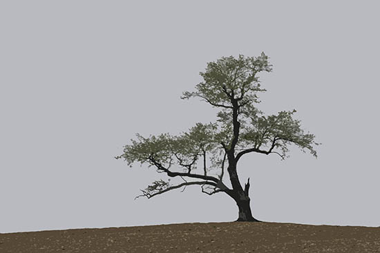 The grand old oak tree stands alone in the field. It has an imposing presence amid the furrows of freshly turned earth. Its knurled trunk and branches are testament to its struggles with the elements over the years. It has a commanding presence. Its offspring have long ago fallen victim to the plow, but the patriarch still stands, saying defiantly to all, “I am still here”.