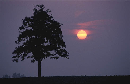 It’s the beginning of another sultry midsummer’s day. The weather has been hot and dry for the past several weeks. The earth blends into the air as it waits patiently for the relief of rain. The dawn sunrise lingers as an orange and gold globe in the hazy atmosphere.