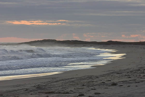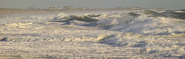 the Atlantic from the neck of nearby Surfside Beach. The incoming waves slow